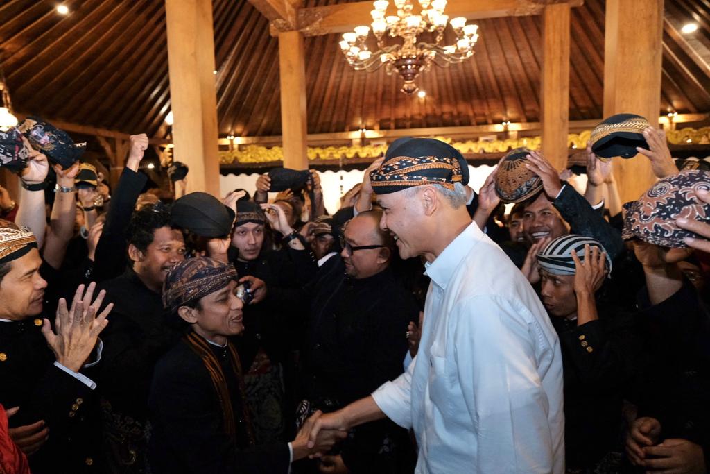 Pagelaran diawali dengan penyematan ikat kepala dari para dalang kepada Ganjar. Itu menandakan jalinan ikatan yang erat antara Ganjar dan para dalang.