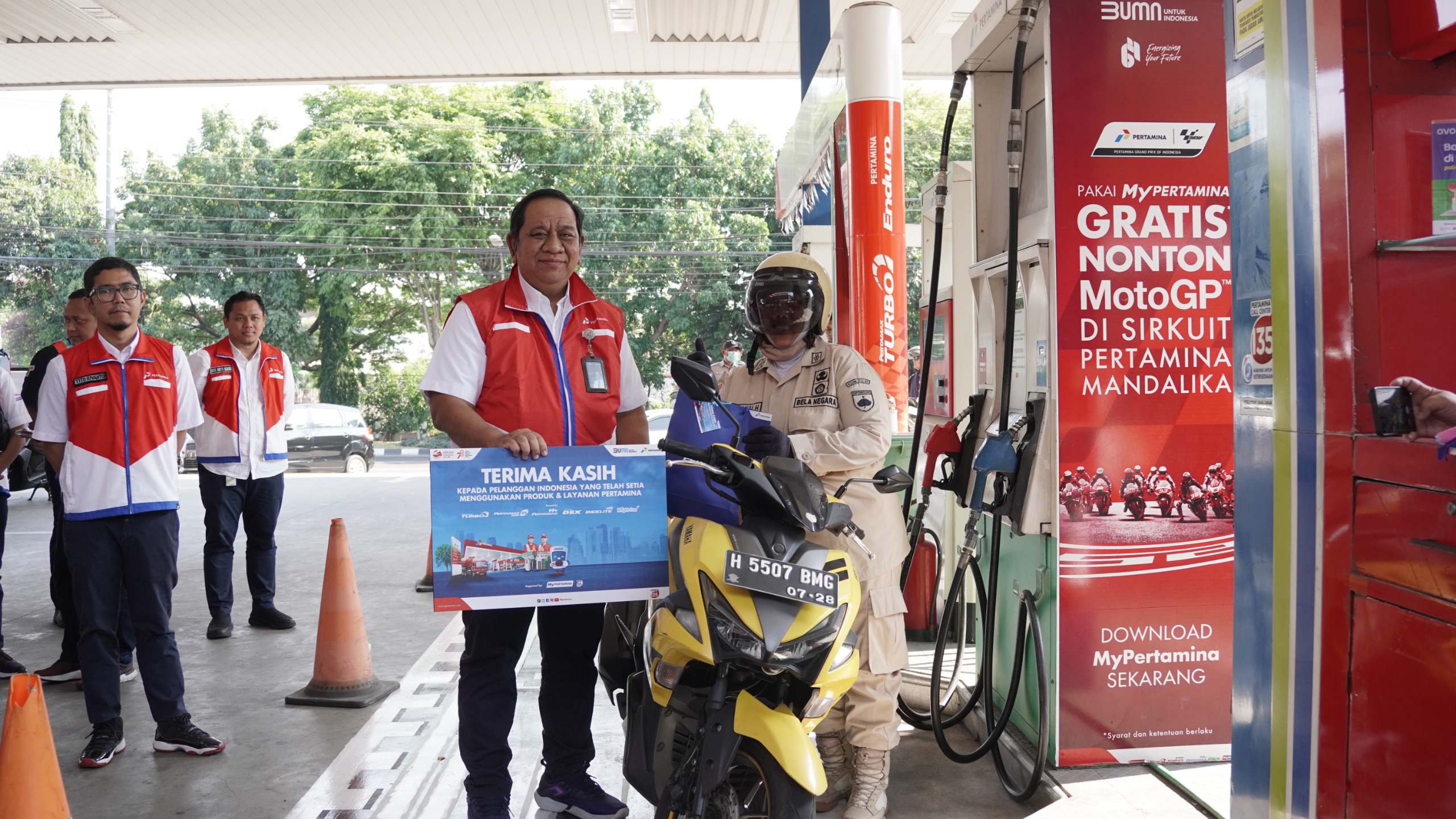 “Pada hari pelanggan yang jatuh pada hari ini (04/09) kami turun langsung untuk menemui pelanggan setia produk Pertamina. Untuk pengguna setia produk BBM berkualitas seperti Pertamax, Pertamax Turbo, Dexlite, dan Pertamina Dex yang beruntung akan mendapatkan e-voucher dengan minimal pembelian tertentu,” tutur Aji Anom.