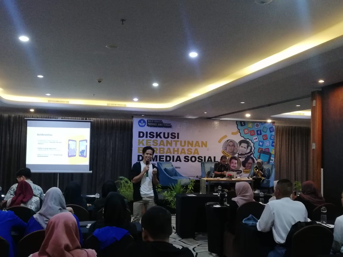 Hal tersebut disampaikannya saat menjadi pembicara Diskusi Kesantunan Berbahasa di Media Sosial yang diselenggarakan Balai Bahasa Jawa Tengah untuk kalangan pelajar dan mahasiswa.
