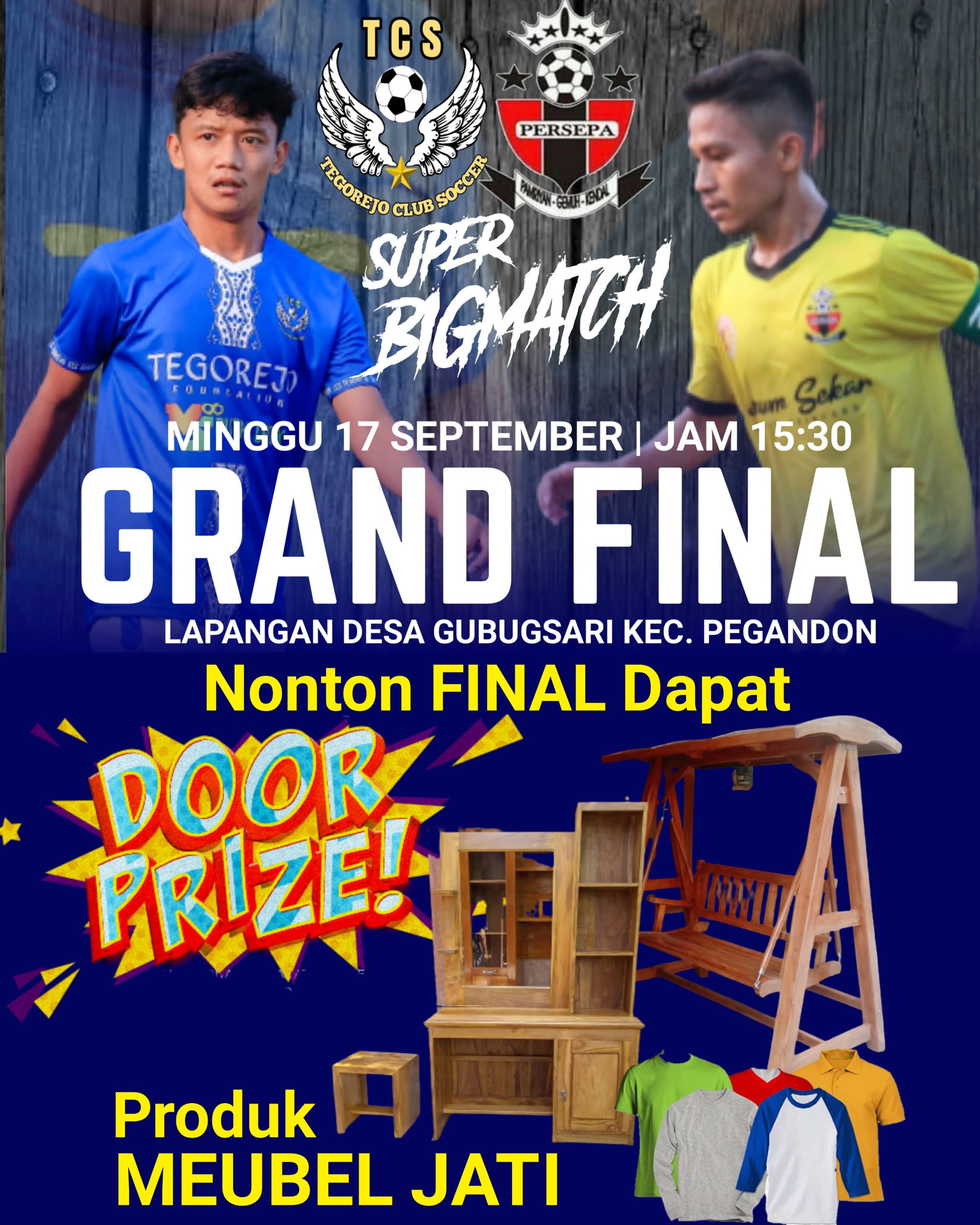 Pada pertandingan Grand Final nanti akan diadakan banyak pengundian door prize menarik dari pihak sponsor utuma berupa produk mebel Mekar Jati desa Winong Kecamatan Pegandon.