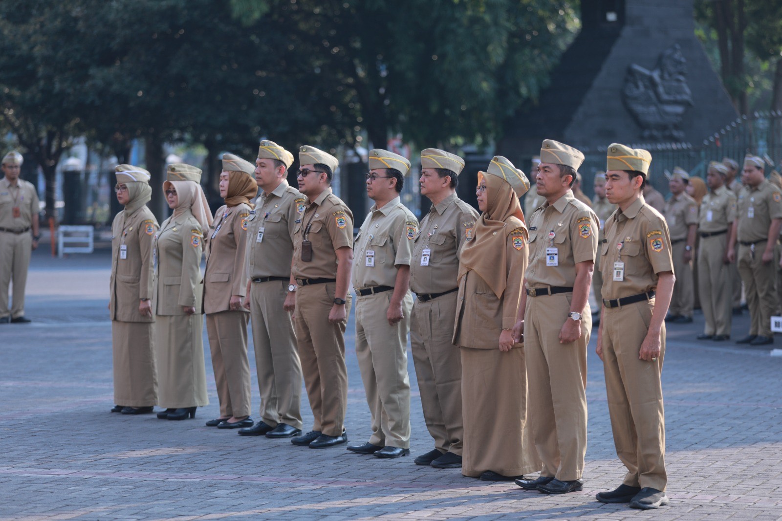 Ikrar netralitas ASN yang dibacakan oleh Sekretatis Daerah Jateng, Sumarno kemudian diikuti oleh seluruh ASN yang mengikuti apel pagi di halaman Kantor Gubernur Jateng, Senin, (30/10/2023).
