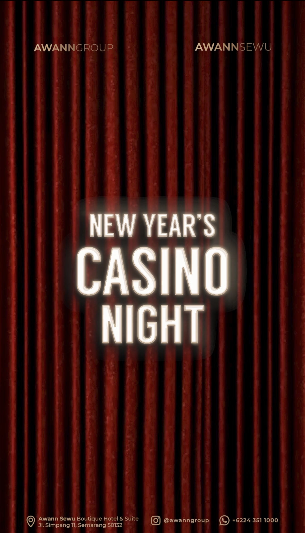 Untuk reservasi dan informasi lebih lanjut terkait event dan promo perayaan Tahun Baru 2024 dari AWANNGROUP, dapat mengunjungi laman Instagram kami di @awanngroup dan @wagabyawanngroup.