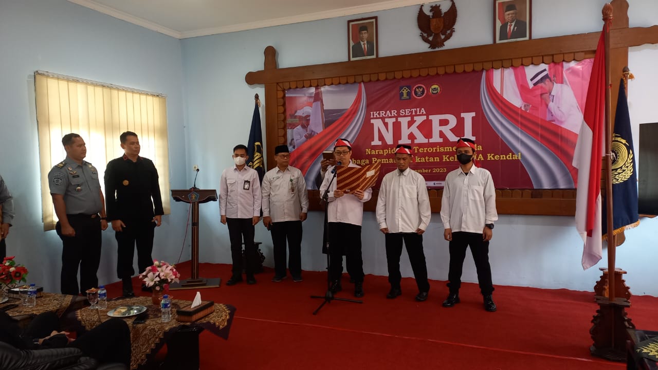 Pengucapan Ikrar Setia NKRI disaksikan oleh Kepala Devisi Permasyarakatan Kantor Wilayah Kemenkumham Jawa Tengah, Kadiyono, Kepala Lapas II A Kendal, Prayitno, Kepala Kementerian Agama Kendal, Mahrus.
