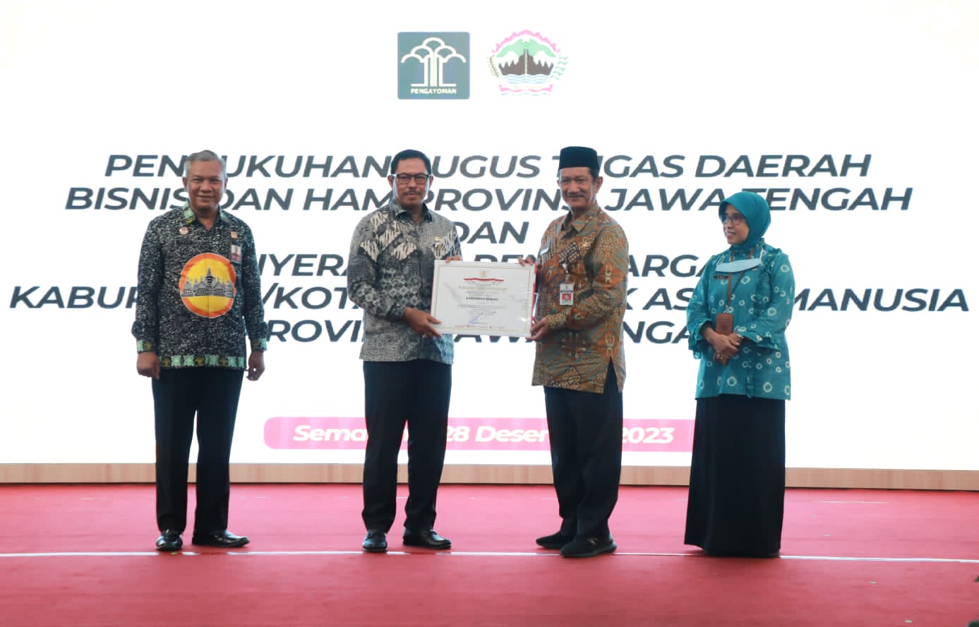 Penghargaan diserahkan oleh PJ. Gubernur Jawa Tengah, Komjen Pol (Pur) Drs. Nana Sudjana AS, M.M dalam acara penganugerahan penghargaan Kabupaten/Kota Peduli HAM yang diselenggarakan oleh Pemerintah Provinsi Jawa Tengah bersama Kementerian Hukum dan HAM Wilayah Jawa Tengah.