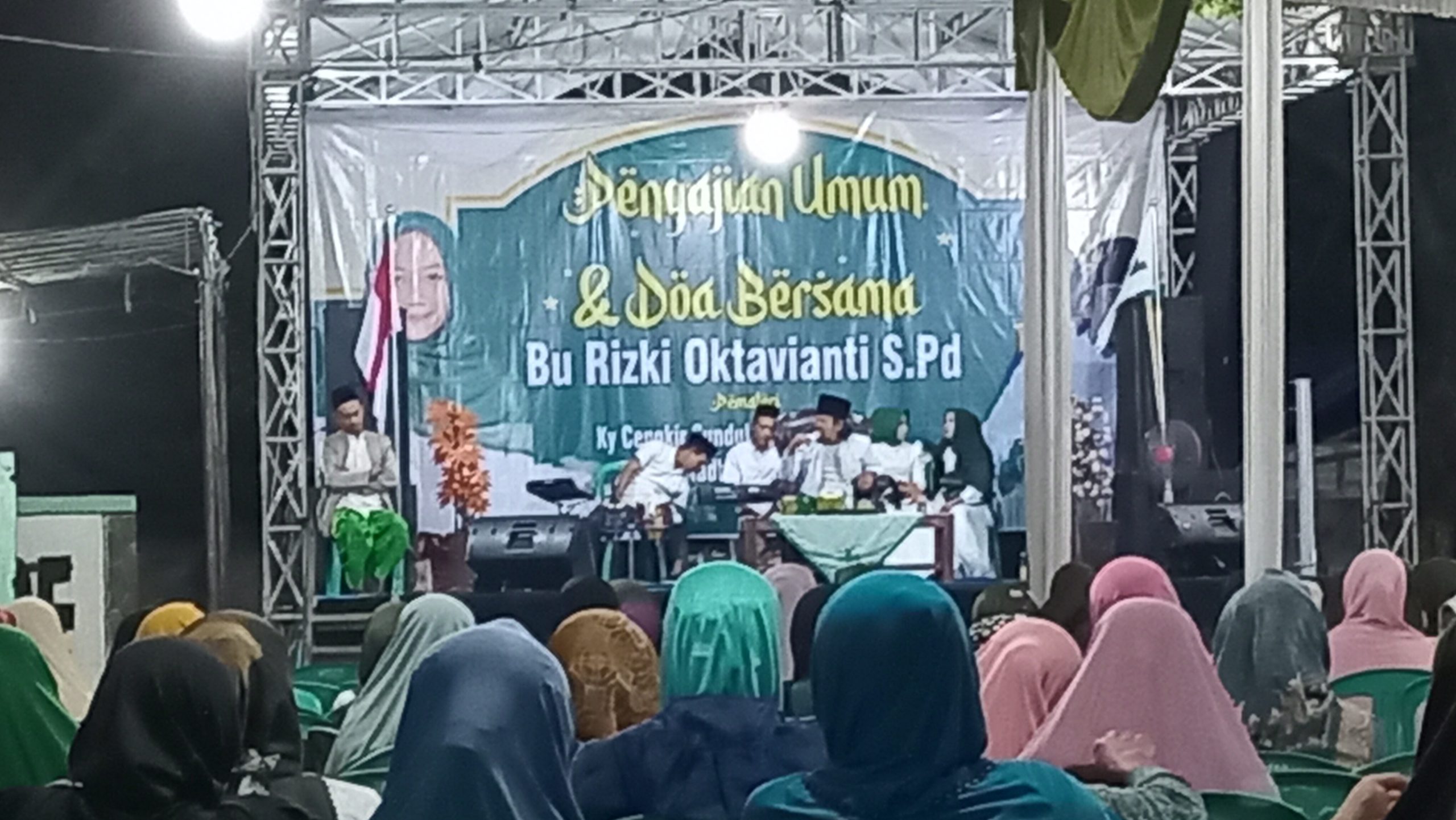 Pengajian dan doa bersama dengan kyai Cengkir Sundul Langit dari Kalirejo Kecamatan Kangkung dan dihadiri relawan beserta tim sukses caleg Rizki Oktavianti.
