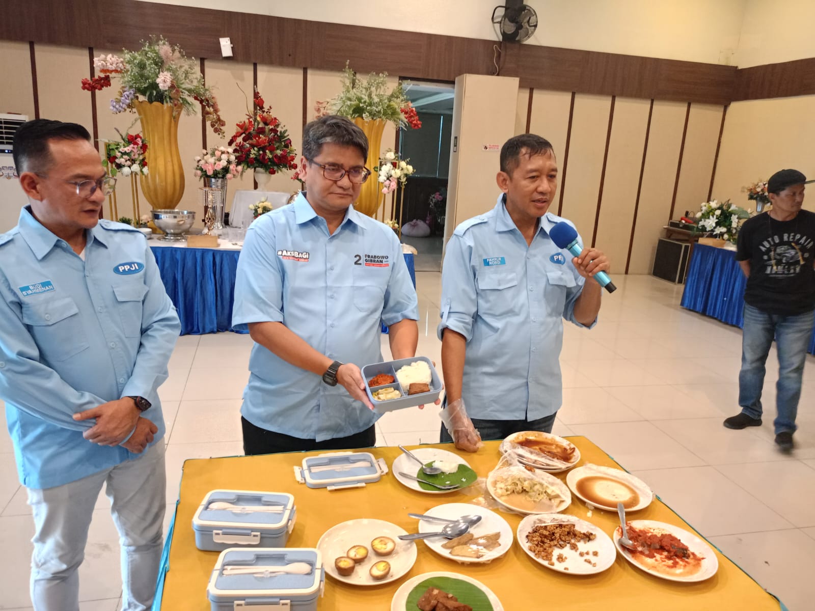 Kegiatan yang didukung Taruna Pro Gibran ini, Wakil Sekretaris Jenderal II DPP PPJI Budi Syahmenan dan Chef Fahrur Rosidi dari DPP PPJI mendemonstrasikan berbagai menu sehat, bergizi, dan terjangkau untuk diterapkan nanti ketika program unggulan PrabowoGibran ini diterapkan.