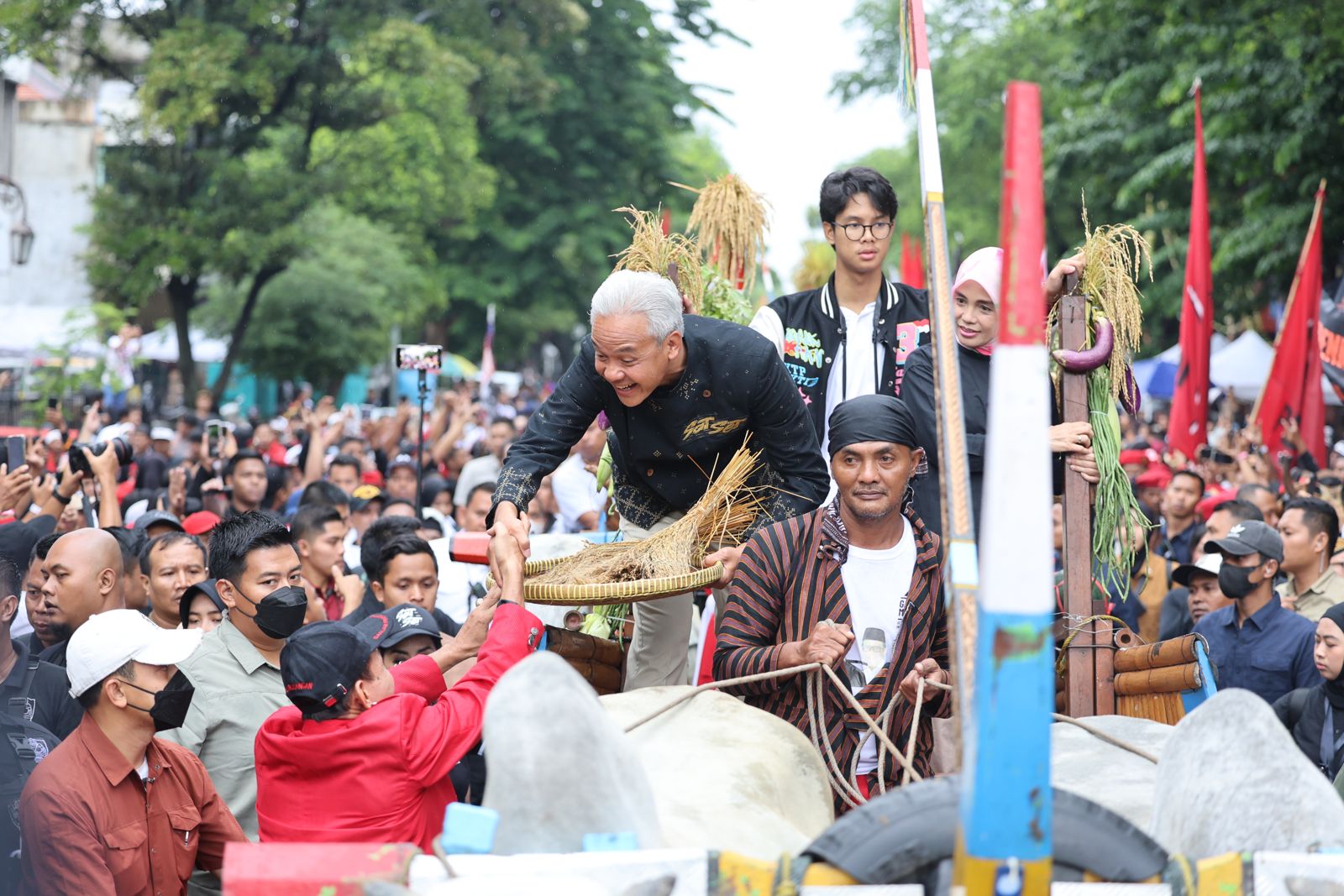 Naik Gerobak Sapi, Ganjar Diarak Ratusan Ribu Warga Keliling Solo