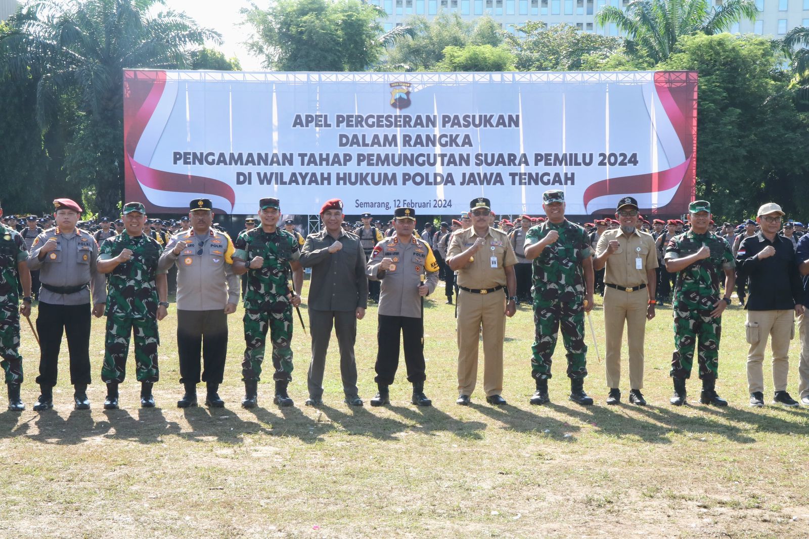 Hadir dalam Apel tersebut Kapolda Jateng Irjen.Pol. Drs. Ahmad Luthfi, PJ Gubernur Jawa Tengah Komjen Pol (Purn) Drs Nana Sudjana A.S., M.M, Pangdam IV/Diponegoro Mayjen TNI Tandyo Budi Revita, Kabinda Jateng, Wakapolda Jateng, Ketua KPU Jateng, Ketua Bawaslu Jateng, Kepala BNN Provinsi Jawa Tengah, Danrem 072/PMK, Danlanud Adi Soemarmo, PJU Polda Jateng, Kapolres/tabes/ta jajaran Polda Jateng dan peserta apel sebanyak 1.700 personil terdiri dari 610 Polri, 469 TNI, 121 pasukan POH (Power on Hand) dan 500 orang Linmas.