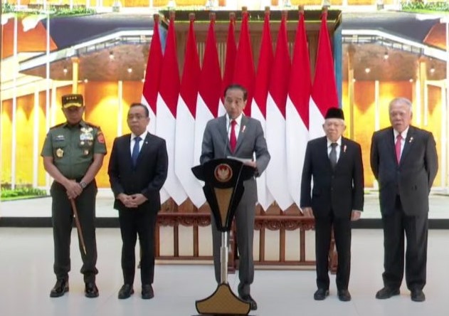 Turut mendampingi Presiden saat memberikan keterangan pers kepada wartawan yakni Wakil Presiden Ma’ruf Amin, Menteri Sekretaris Negara Pratikno, Panglima TNI Jenderal TNI Agus Subiyanto, Menteri Pekerjaan Umum dan Perumahan Rakyat Basuki Hadimuljono.