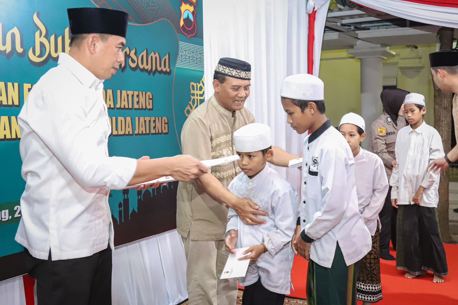 Dalam kegiatan yang dihadiri jajaran Forkompinda dan ratusan jamaah tersebut, Kapolda memberikan tali asih sebagai bentuk kepedulian Polda Jateng kepada ratusan anak yatim piatu dari panti asuhan Al-Bisyri, Jatingaleh, kota Semarang