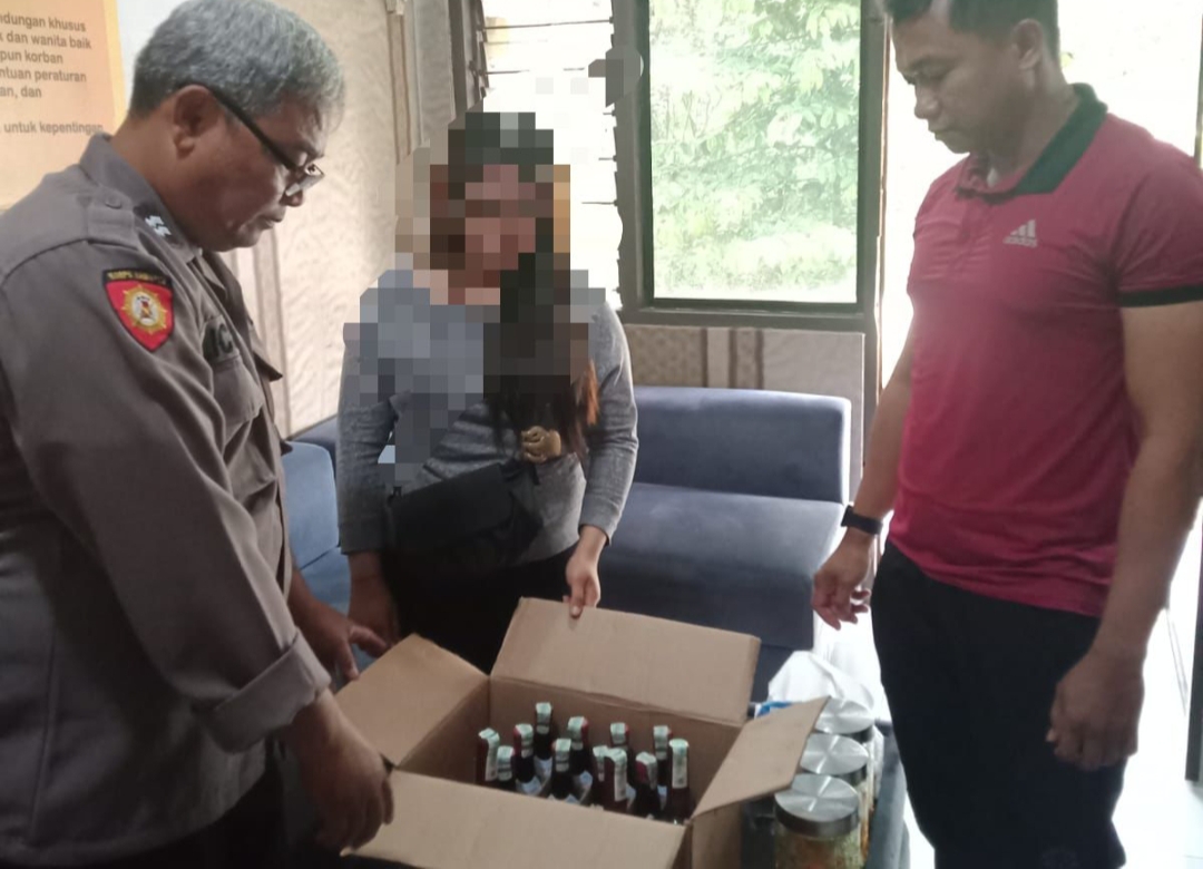 Dari tempat pelaku petugas berhasil mengamankan pelaku beserta barang bukti berupa sepuluh botol minuman keras cap tiga orang dan tiga botol merk Kawa Kawa anggur hijau serta pelaku kita amankan untuk dilakukan pemeriksaan lebih lanjut.