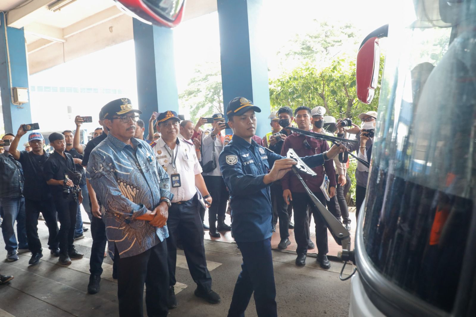 Pengecekan diawali dari Terminal Tirtonadi, Kota Surakarta. Di terminal itu ia meninjau fasilitas cek kesehatan, cek angkutan atau armada, serta posko lebaran Terminal Tirtonadi.