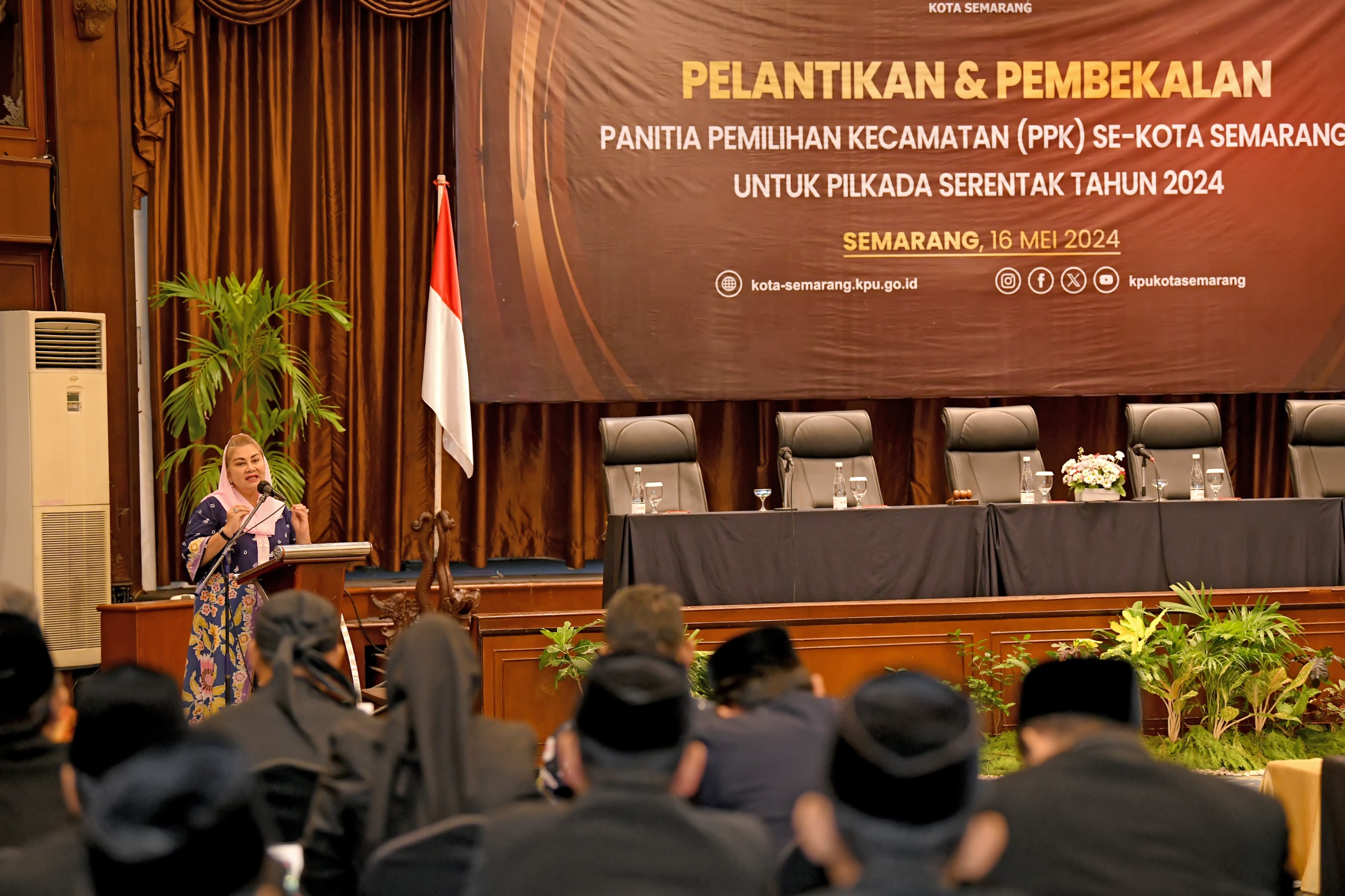 SEMARANG (Awall.id) – Wali Kota Semarang, Hevearita Gunaryanti Rahayu menghadiri pelantikan 80 Panitia Pemilihan Kecamatan (PPK) oleh Komisi Pemilihan Umum (KPU) Kota Semarang, Kamis (16/5/2024).