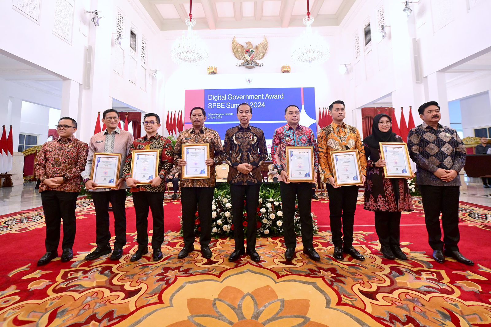 Penghargaan tersebut diberikan langsung oleh Presiden Jokowi kepada Penjabat (Pj) Gubernur Jawa Tengah, Nana Sudjana dalam acara SPBE Summit 2024 dan Peluncuran GovTech Indonesia di Istana Negara, Jakarta, Senin, 27 Mei 2024.
