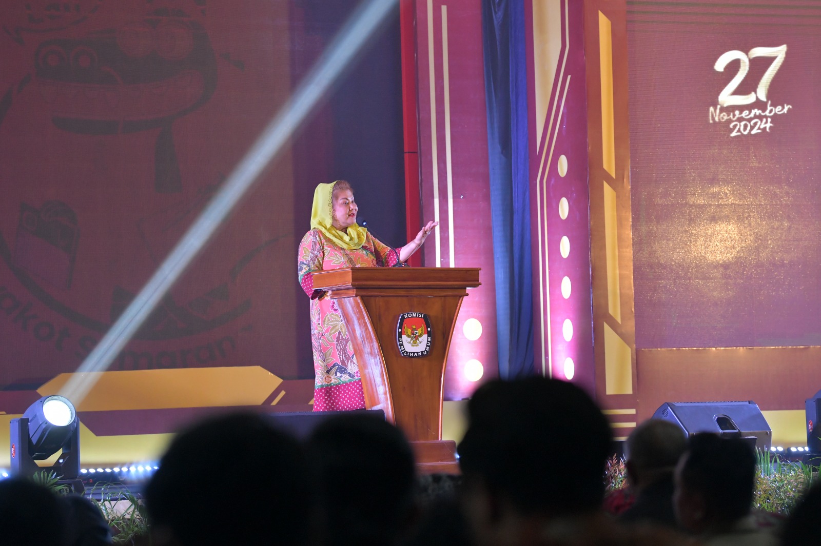 Dalam kesempatan itu, Mbak Ita sapaan akrab Hevearita Gunaryanti Rahayu berpesan agar masyarakat bisa menjaga kondusifitas saat pelaksanaan Pemilu Pilkada di Kota Semarang. Dirinya juga meminta semua pihak untuk terlibat dalam pengamanan agar Pemilu berjalan dengan lancar dan tertib.