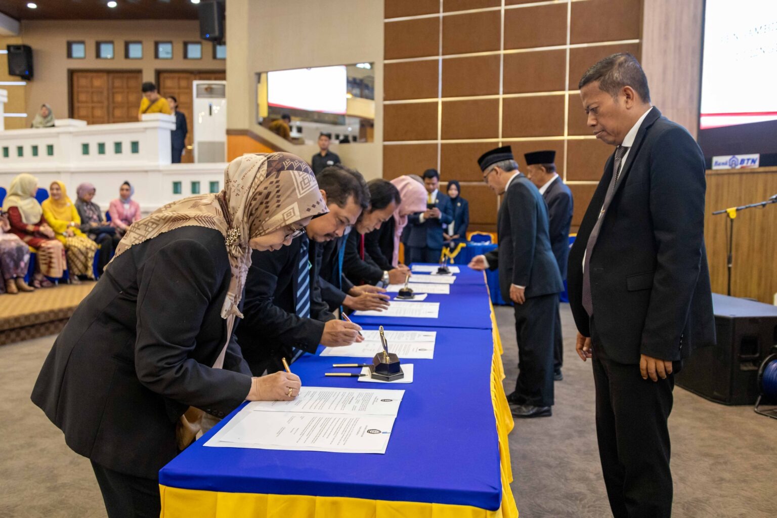 Upacara Pengambilan Sumpah dan Pelantikan Pejabat dihadiri oleh jajaran pimpinan UNDIP beserta para pejabat yang dilantik.