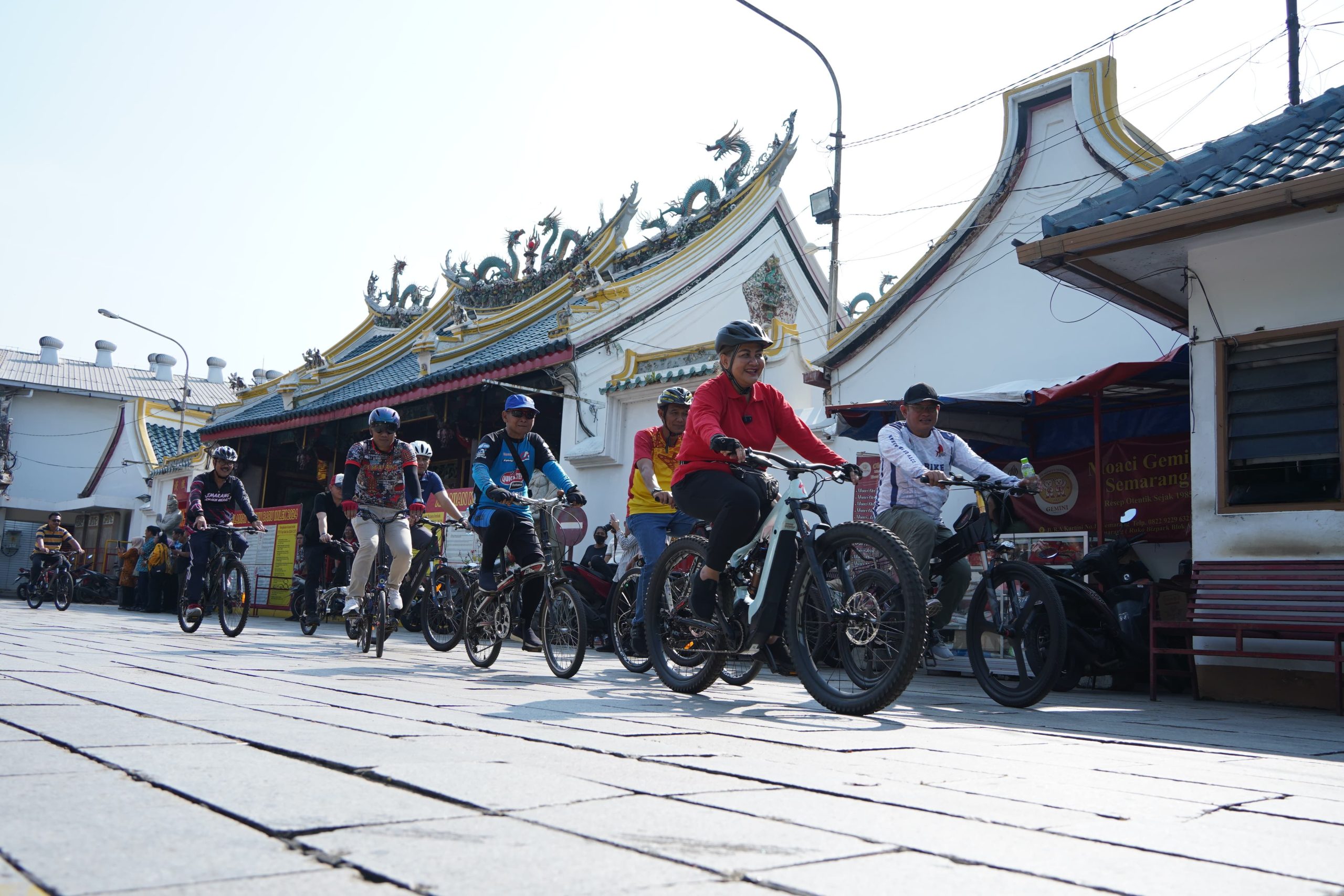 “Saya tadi menyusuri sungai-sungai ini, karena Kali Semarang ini kan wajah Kota Semarang yang membelah kawasan kota dengan permukiman,” ujar Mbak Ita, di sela gowes keliling menyusuri Kali Semarang menuju Kelenteng Tay Kak Sie Semarang, Selasa (14/5/2024).