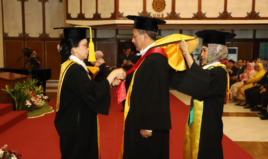 Pengukuhan dilaksanakan , di auditorium GPH Haryo Mataram, UNS, Surakarta Jumat (28/6). Pengukuhan dilakukan langsung Plt Rektor UNS, Chatarina Muliana.