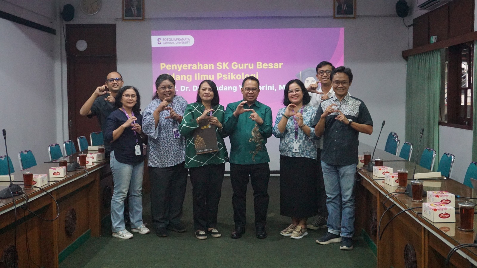 Pada Jumat, 12 Juli 2024, SCU kembali menerima SK Guru Besar salah satu dosen Fakultas Psikologi (FPsi). Beliau adalah Prof. Dr. Dra. Endang Widyorini, MS.
