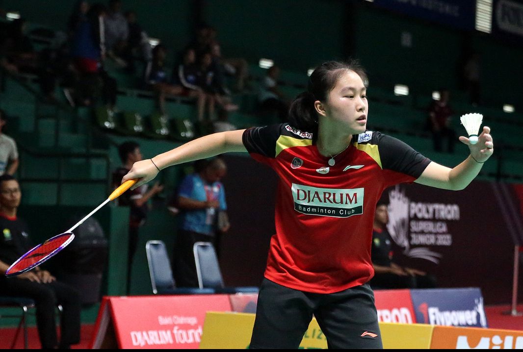 Pertandingan pembuka Polytron Superliga Junior 2024 yang digelar pada Senin (12/8) mempertemukan tim PB Djarum A dengan PB Power Rajawali di kategori U-17 Putri.