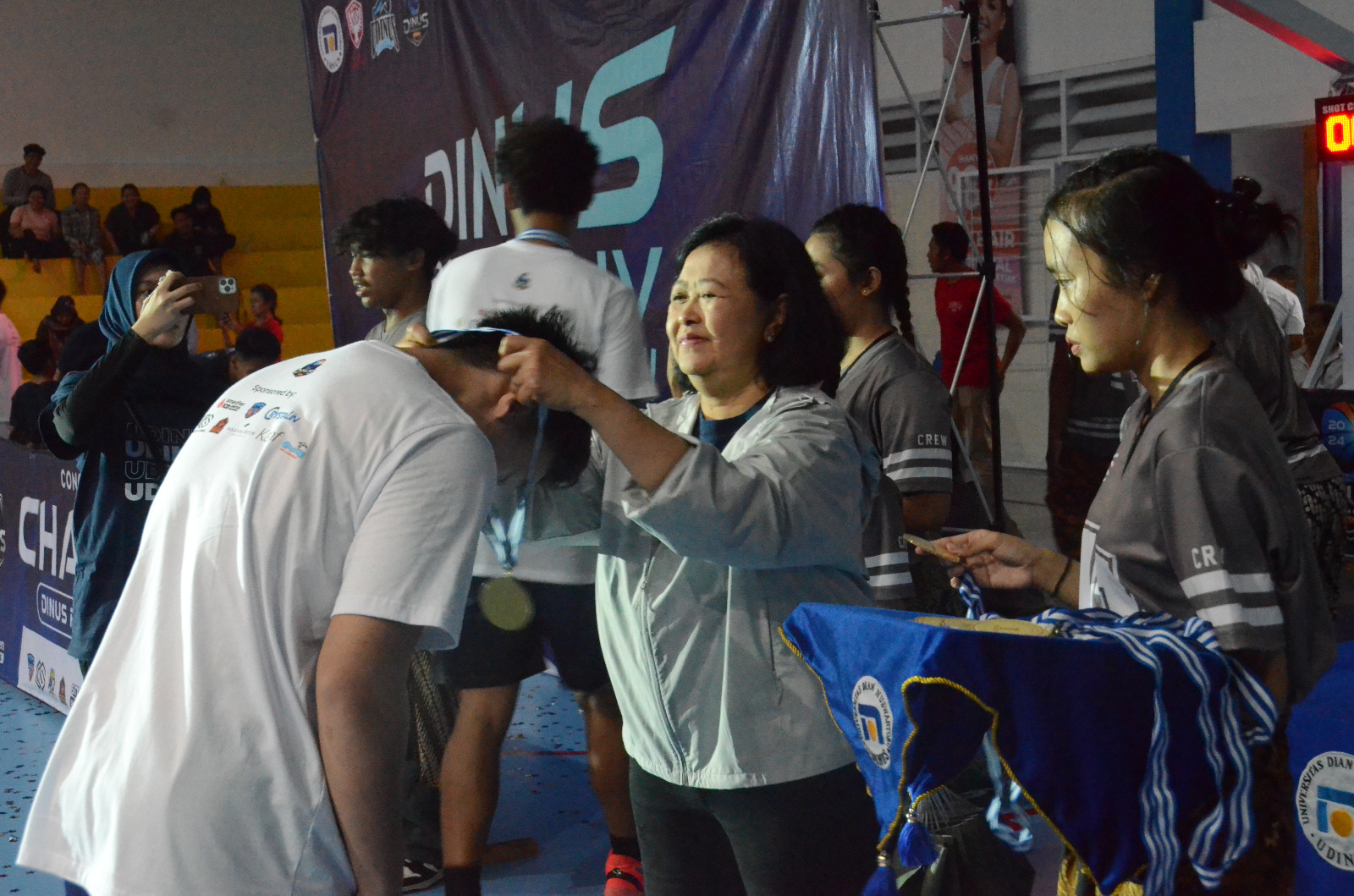 “Malam ini kami sudah sukses menggunakan fasilitas terbaru Udinus di USSC untuk menyelenggarakan lomba bola basket antar SMP dan SMA/SMK. Untuk adik-adik yang juara akan kami berikan apresiasi berupa beasiswa voucher untuk masuk di Udinus, dan bergabung di UKM Bola Basket kami,” terangnya.