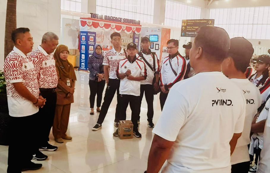 SEMARANG (Awall.id) – Wakil Ketua Umum V KONI Jawa Tengah, Sudarsono melakukan pelepasan cabang olahraga Muaythai dan balap sepeda di Bandara A.Yani Semarang, Senin( 2/9/2025).