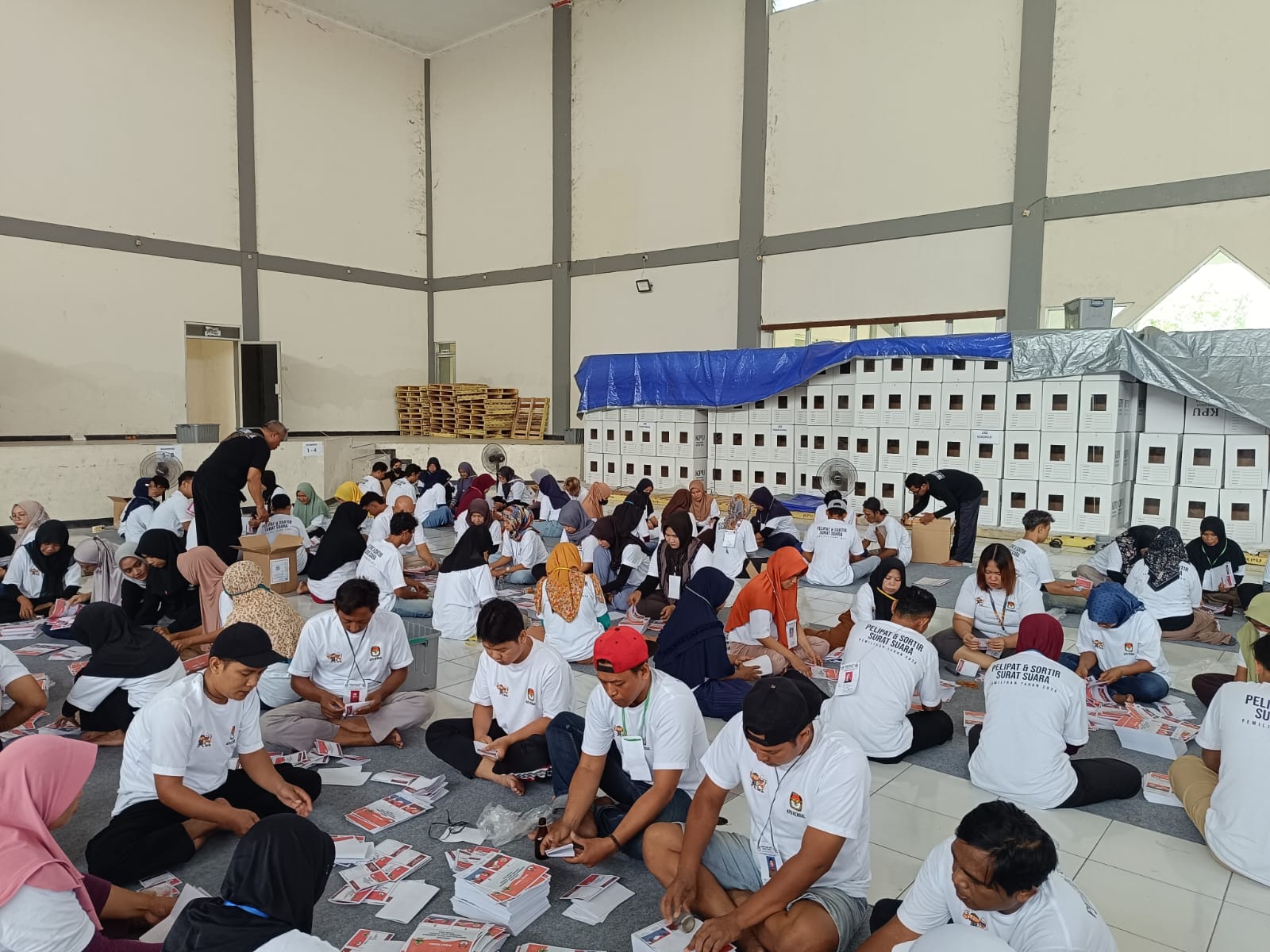 “Kurang formulir, karena belum datang. Setelah semua lengkap, baru kami sunting per paket untuk tiap-tiap TPS. Setelah selesai baru kemudian didistribusikan ke tiap-tiap TPS dengan pengawalan dari petugas kepolisian,” ungkap Khasanudin.