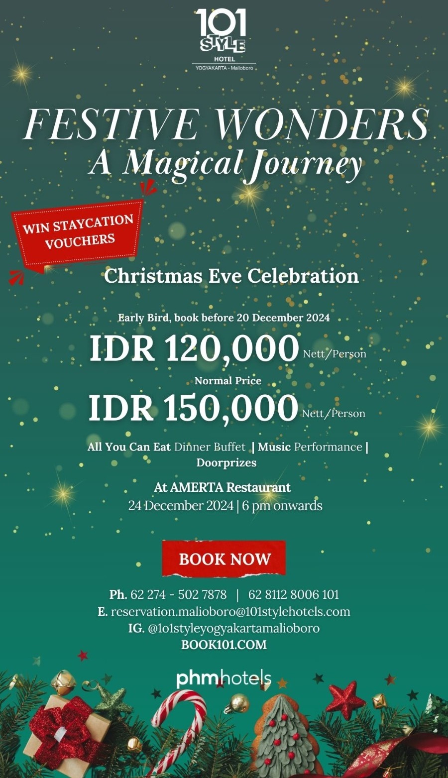 YOGYAKARTA (Awall.id) — Menyambut musim liburan Natal dan Tahun Baru, 1O1 Style Yogyakarta Malioboro menghadirkan berbagai event serta promo menarik yang dapat dinikmati bersama keluarga bertemakan Festive Wonders ; A Magical Journey.