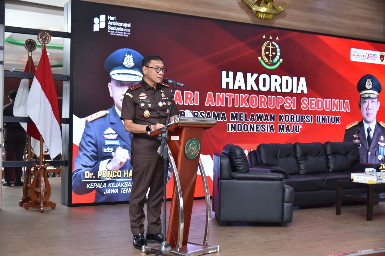 Hal itu disampaikan dalam momentum peringatan Hari Antikorupsi Sedunia (HAKORDIA) 2024, dengan menggelar kegiatan edukasi yang melibatkan mahasiswa dari berbagai perguruan tinggi di Kota Semarang, berlangsung di Kantor Kejati Jateng, Senin (9/12) pagi.