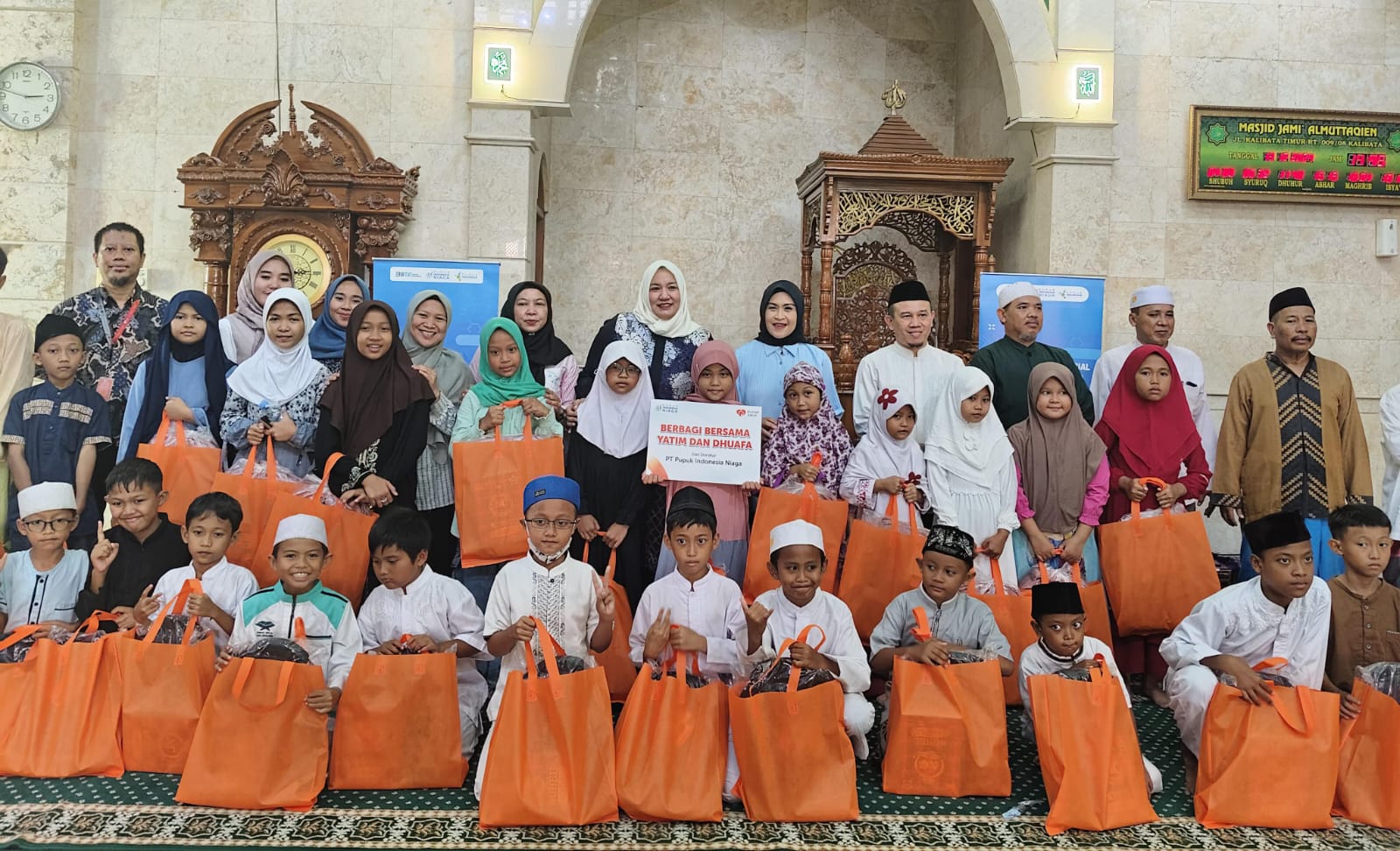 Acara yang berlangsung di Masjid Al-Mutaqqin – Jakarta Selatan ini diisi dengan berbagai kegiatan positif, seperti Tilawah Qur’an serta pemberian santunan berupa uang tunai, makanan dan peralatan sekolah.