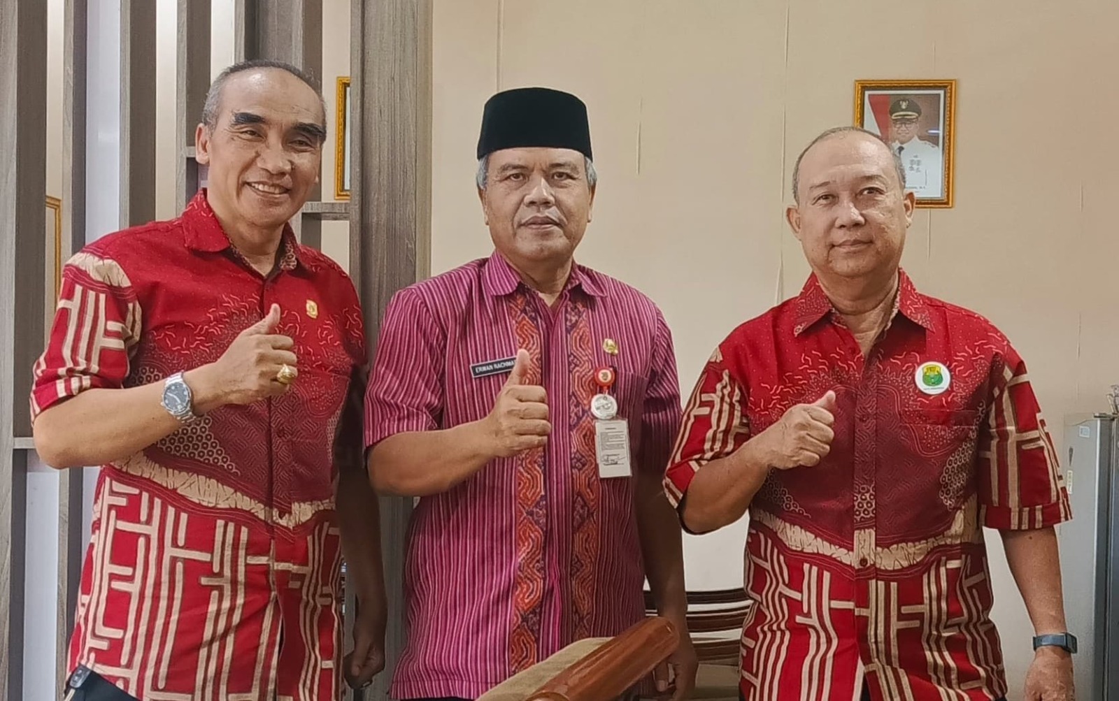 _Ketua Pengkot PBSI Semarang, Drs Ahmad Muhaimin SIKom MPd MH dan Sekum Pengkot PBSI Semarang, Didik Hermanto, melakukan audiensi ke Dinas Pendidikan Kota Semarang dan diterima Sekretaris Dinas Pendidikan Kota Semarang, Erwan Rachmat SPd MPd (tengah) pada 18 Maret 2025_