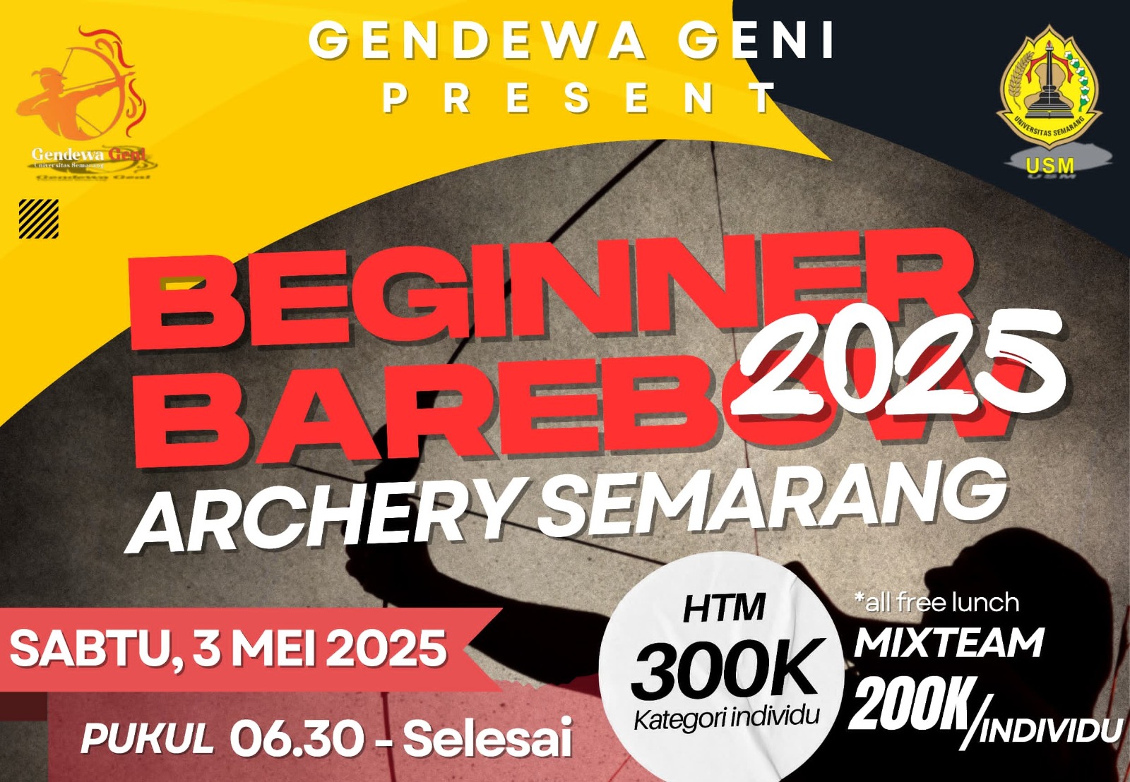 SEMARANG (Awall.id) – Unit Kegiatan Mahasiswa (UKM) Panahan USM akan menggelar Kompetisi Panahan USM Cup I 2025 bagi atlet pemula pada 3 Mei 2025 di Gelora USM Jl Arteri Soekarno-Hatta, Tlogosari, Semarang.