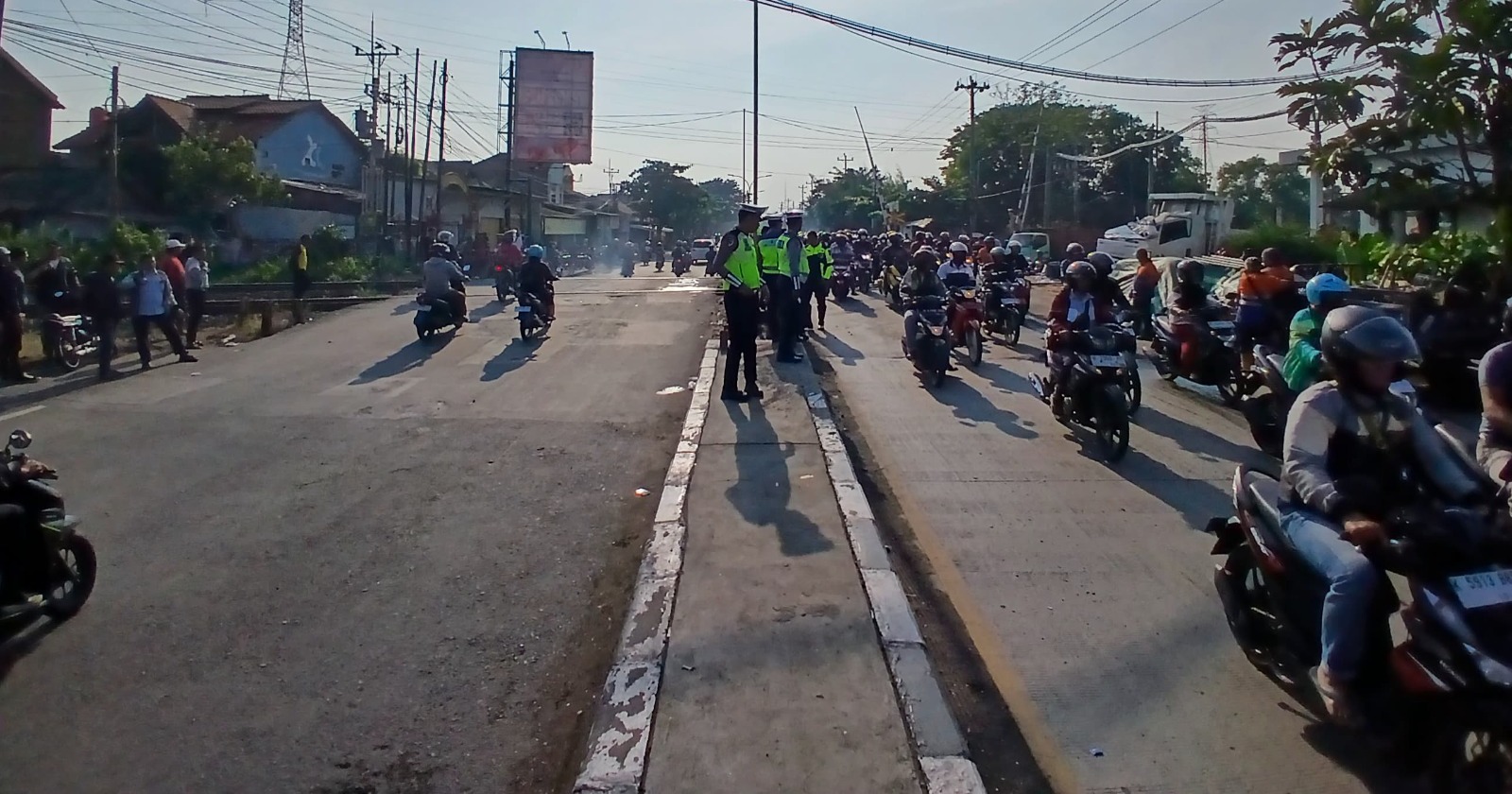 Selain itu, akses Jalan Kaligawe yang sempat ditutup total akibat rangkaian kereta yang melintang di perlintasan kini telah kembali dibuka dan bisa dilalui kendaraan dari arah Demak maupun arah Semarang.