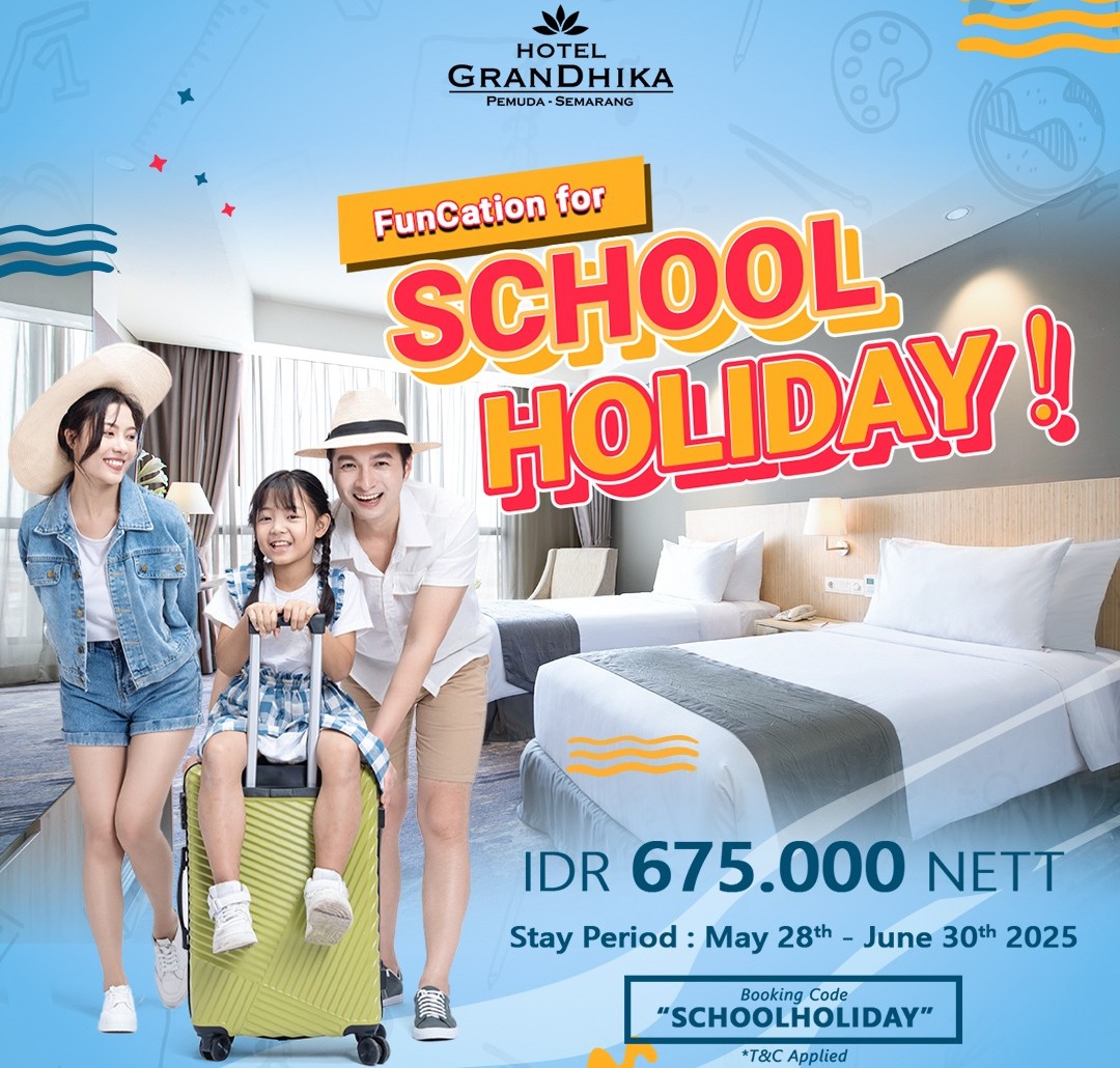 SEMARANG (Awall.id) – Apakah Anda sudah merencanakan bagaimana menikmati liburan sekolah dengan Putra-Putri Anda? Bagaimana apabila memberikan pengalaman seru menginap di Hotel, ini tentu menjadi solusi yang baik dengan memberikan suasana yang berbeda dikala rutinitas yang cukup melelahkan dirumah maupun di Sekolah, tentunya dengan tetap memberikan suasana yang aman, nyaman, sambil menikmati hidangan istimewa ala Hotel Bintang Empat di tengah Kota.