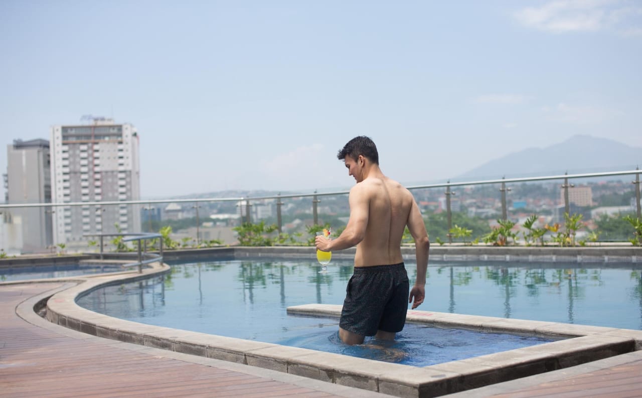 Promo ini terbuka untuk semua kalangan, baik tamu yang menginap maupun masyarakat umum yang ingin merasakan sensasi berenang dan bersantap di tengah kota.