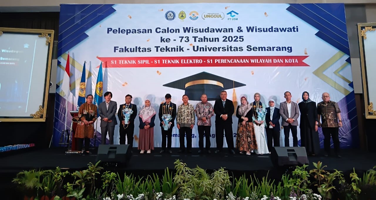 SEMARANG (Awall.id) – Dekan Fakultas Teknik Universitas Semarang (USM), Dr Purwanto ST MT melepas 197 calon wisudawan dalam acara Pelepasan Calon Wisudawan dan Wisudawati Ke-73 di MG Setos Hotel, pada Sabtu (23/8/2025).