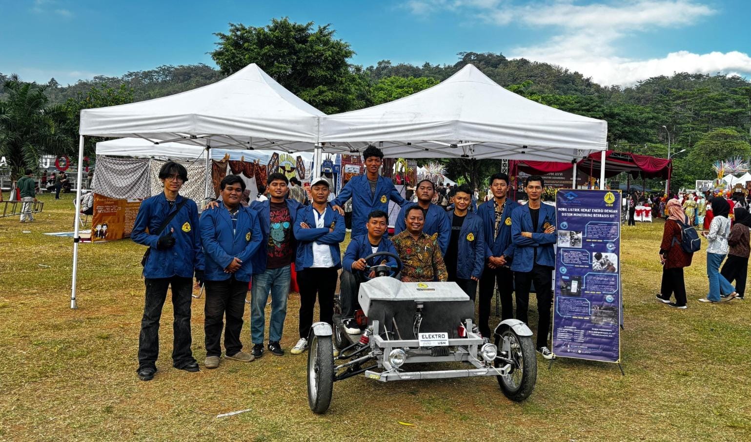 Melengkapi deretan inovasi, mahasiswa Teknik Elektro USM juga menghadirkan prototipe mobil listrik model _Hot Rod,_ kendaraan futuristik dengan kendali berbasis IoT yang memungkinkan pengawasan status baterai, kecepatan, serta pengendalian jarak jauh melalui aplikasi ponsel.