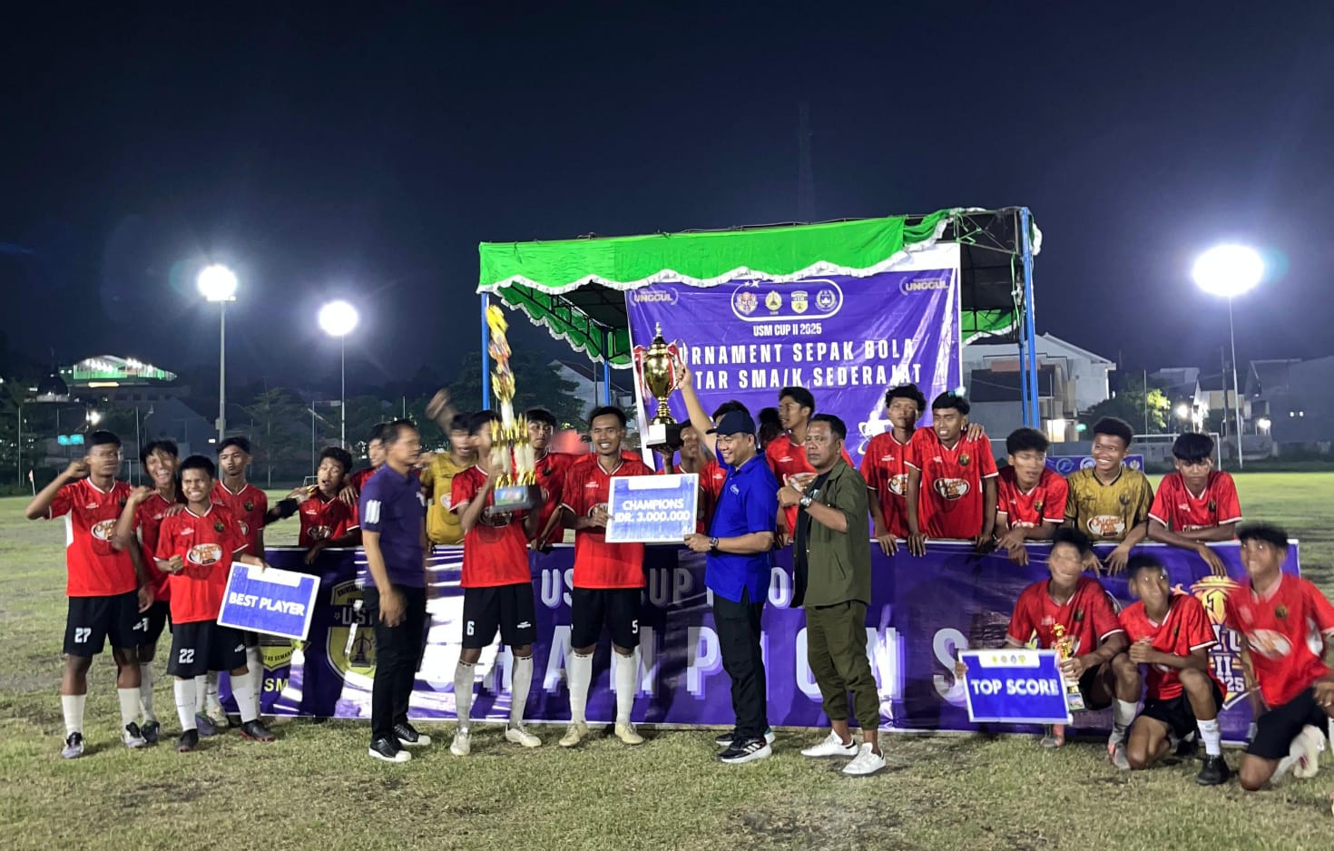 ”Turnamen ini adalah yang kedua kalinya kami gelar melalui PS USM. Selain untuk menjalin silaturahmi antar pelajar, ajang ini juga kami jadikan sarana seleksi. Siapa yang tampil bagus akan dipilih pelatih PS USM untuk bergabung, bahkan kami sediakan beasiswa khusus bagi mereka,” tegas Junaidi.