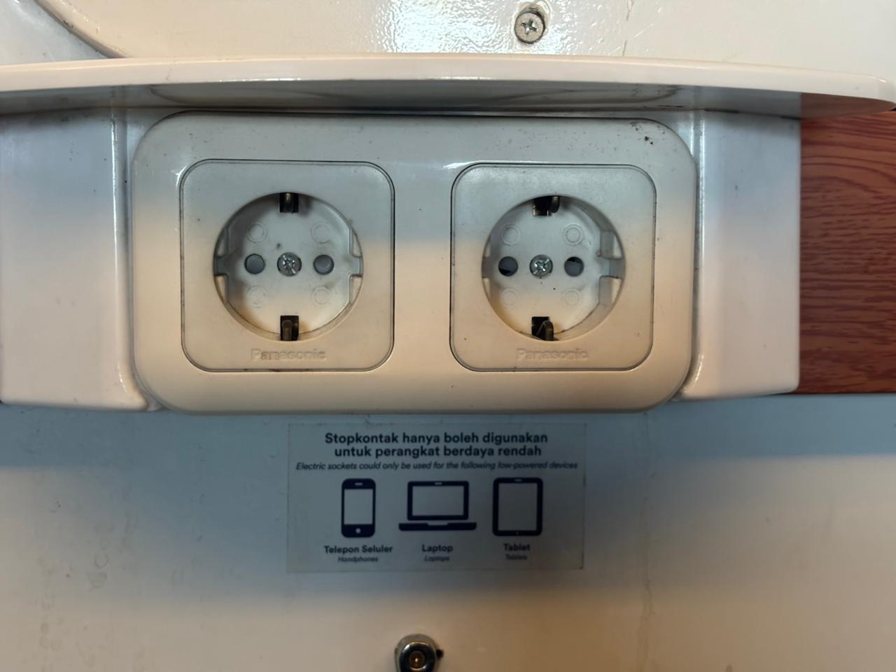 Sesuai ketentuan yang berlaku, colokan listrik di kereta api hanya diperbolehkan untuk perangkat elektronik berdaya rendah, seperti laptop, telepon seluler, dan tablet.