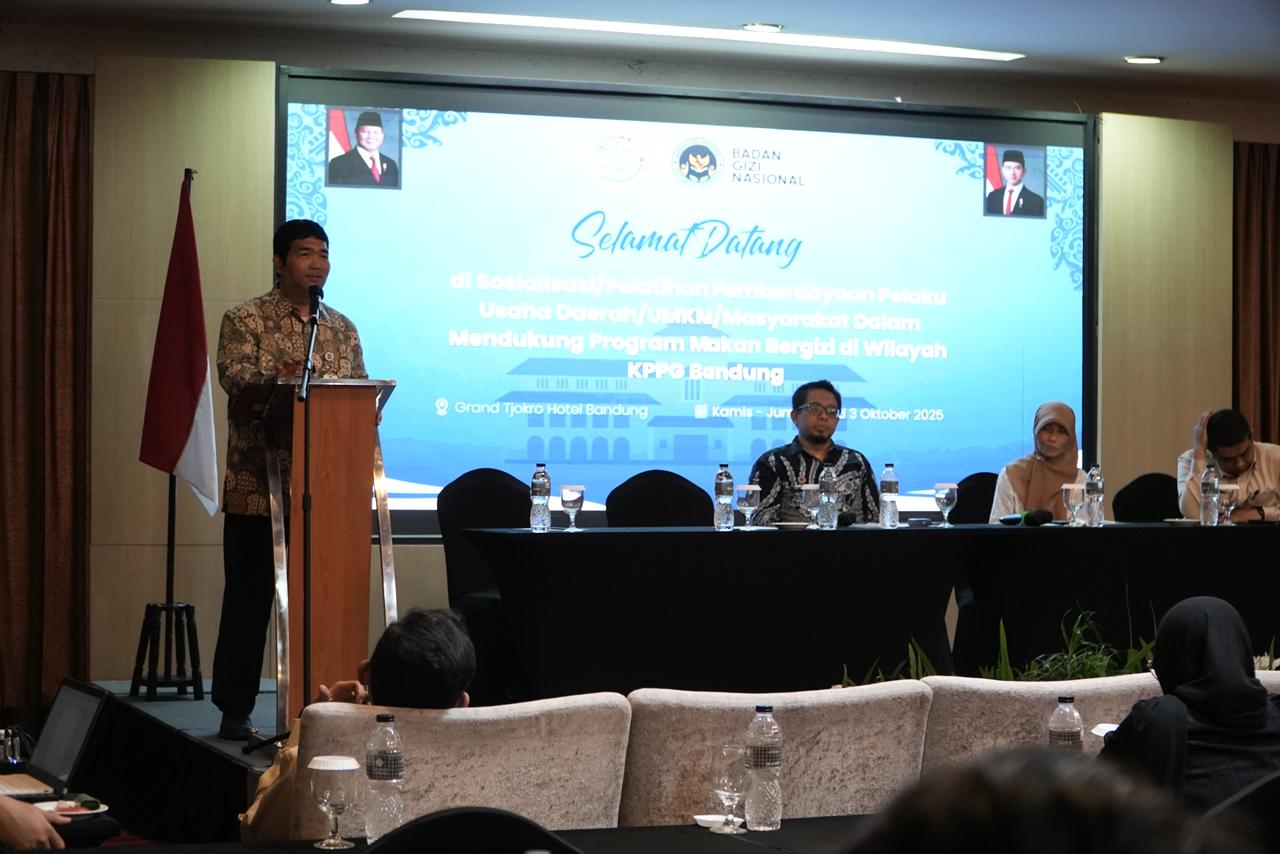 BANDUNG (Awall.id) – Badan Gizi Nasional (BGN) menggelar sosialisasi Program Pemberdayaan Masyarakat (PPM) di Bandung untuk mendukung program Makan Bergizi Gratis (MBG). Sosialisasi ini menyasar bagi pelaku usaha daerah, UMKM, serta masyarakat untuk mendukung implementasi Program Makan Bergizi Gratis.