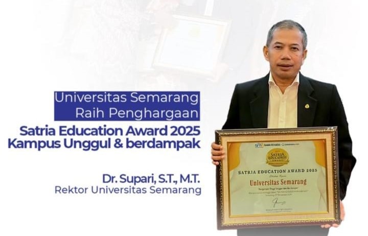 SEMARANG (Awall.id) – Universitas Semarang (USM) meraih penghargaan bergengsi tahunan, Satria Brand Award (SBA) 2025 untuk kategori Satria Education Award yang digelar Suara Merdeka Network pada 7 November 2025 di Padma Hotel, Semarang.