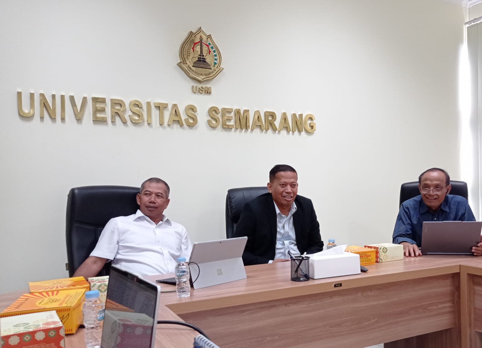 Ketua Dewan Penasihat, Prof Dr Suharnomo, SE MSi, bersama anggota Prof Dr Ir Agus Indarjo MPhil, bertemu dengan jajaran pimpinan USM, yakni Rektor Dr Supari ST MT, Wakil Rektor I Prof Dr Ir Haslina, Wakil Rektor II Dr Abdul Karim, serta Wakil Rektor III Dr A Firman Daru.