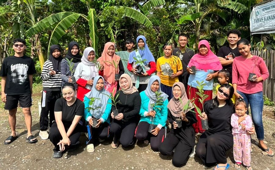 Berbagai jenis bibit pohon dibagikan secara gratis dan ditanam bersama oleh peserta kegiatan.