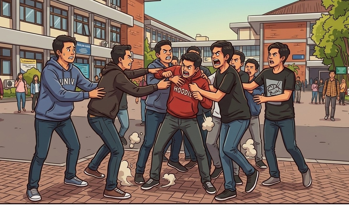 SEMARANG (Awall.id) – Seorang mahasiswa Universitas Diponegoro (Undip) berinisial Arnendo (20) diduga menjadi korban pengeroyokan oleh puluhan mahasiswa satu jurusan di sebuah rumah kos kawasan Bulusan, Tembalang, Kota Semarang, pada 15 November 2025 malam. Korban mengalami luka berat dan kini menjalani pemulihan serta cuti kuliah akibat trauma.