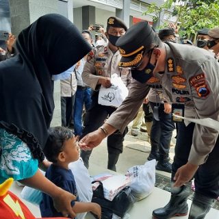 Irwasda Polda Jateng Bantu dan Hibur Warga Terdampak Banjir Rob di Pekalongan