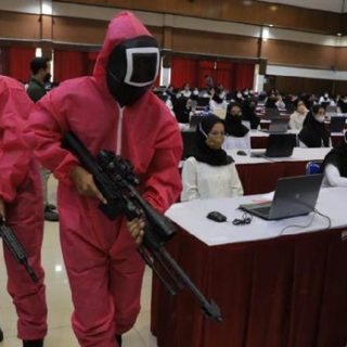 Unik, Pink Soldier “Squid Game” Turut Awasi Peserta Tes SKD CPNS Kemenkumham Jatim