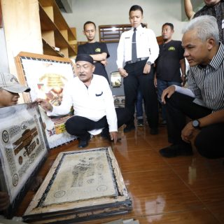 SUKOHARJO (Awal.id) – Gubernur Jawa Tengah, Ganjar Pranowo, mengunjungi pengrajin lukis kulit kambing Kelompok Tatah Sungging di Desa Sonorejo, Kecamatan Sukoharjo, Kabupaten Sukoharjo, Selasa (11/7/2023). Ganjar mengatakan, siap...